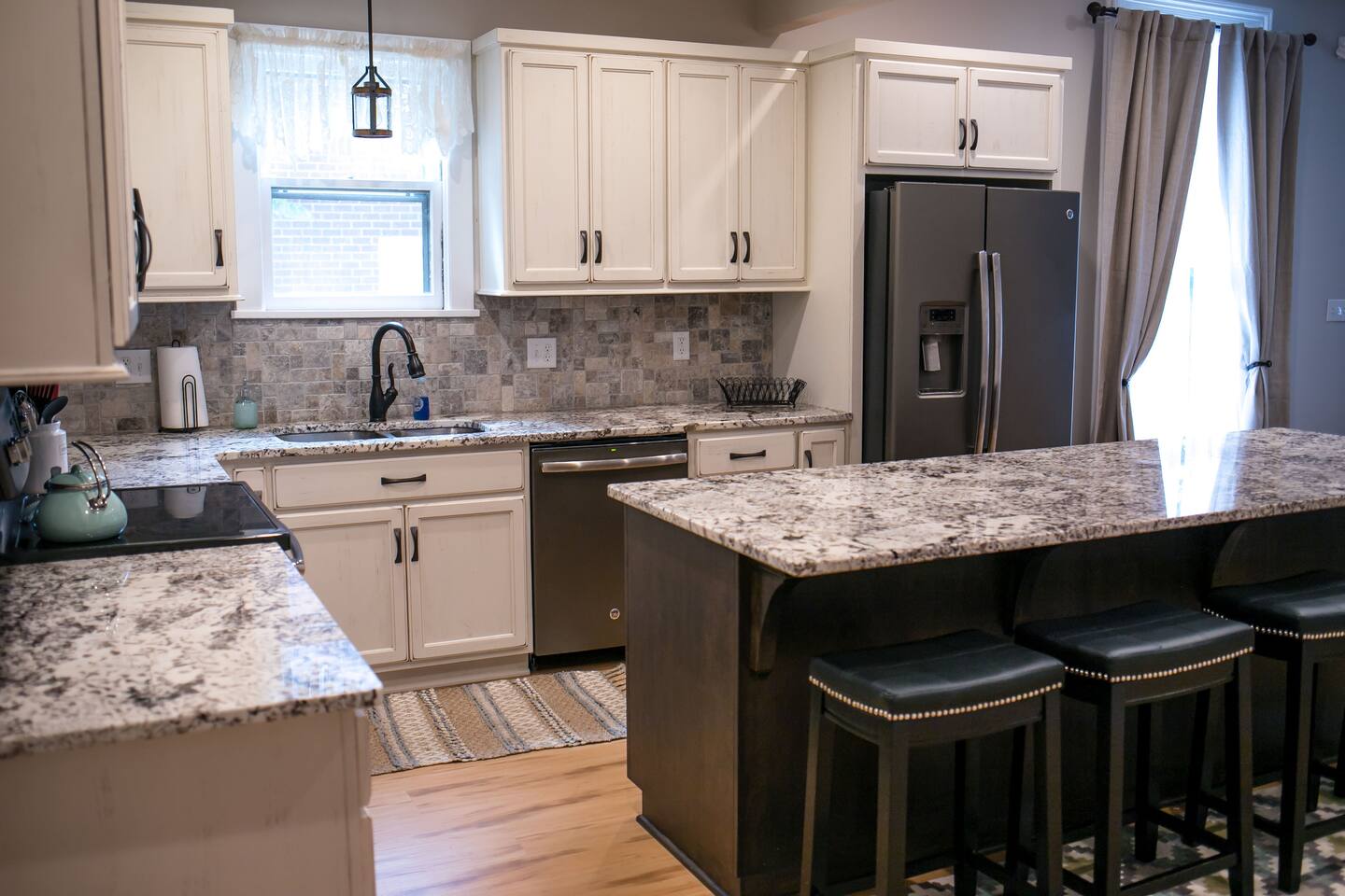 When you walk in, you will love all the space. You will walk into the living room to your right and then flow into the large oversized kitchen. This property is located one street away from the college campus WKU, there are many rentals in the area as well as our downtown district, so you may hear outside noise! Bedroom #1: King Bed located to the left inside the front door to the right with a full bathroom attached. Bedroom #2: King Bed located in the back of the house to the left with a bathroom attached as well with double sinks and a shower. Bedroom #3: King Bed located up the stairs and go straight! Bedroom #4: Queen Bed located up the stairs down the hall to the left. Bedroom #5: Queen Bed located up the stairs down the hall to the left. Bathroom #3 is located on the first floor in the back of the home to the right. Beechbend Park - 4.2 Miles - 11 minutes Corvette Plant & Museum - 5.3 Miles - 12 Minutes Lost River Cave - 2.9 Miles - 7 Minutes Mammoth Cave - 21 Miles - 31 Minutes WKU Campus - 0.2 Miles - 1 Minutes I-65 Access - 4.3 Miles - 11 Minutes